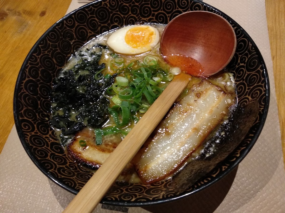We happened to be in the area and wanted some lunch, our kids love sushi and ramen. We stepped in and it was on the early side, but were greeted by a cheery man who isn’t at my recognized we spoke English. He gave us menus and was so kind. It’s rare to get personal service and friendly service quite like that in Barcelona, so it was a refreshing change. We had the miso ramen and tonkutsu ramen and both were amazing. We were given the option ti add spice with a house made chili sauce that was perfect. We really had an amazing meal and I’d highly recommend it to anyone! We loved our experience.